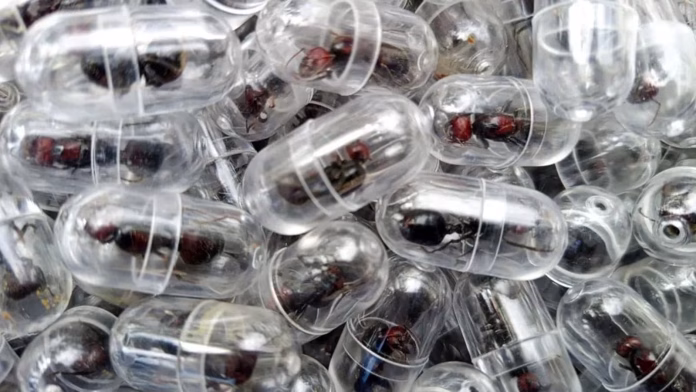 Segundo as autoridades, das 2.238 formigas recuperadas, 1.948 estavam embaladas em tubos de ensaio e o restante em três rolos de papel higiênico.