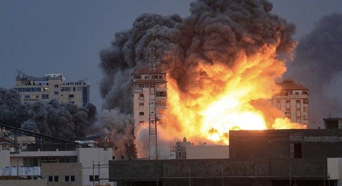 De acordo com fontes palestinas na Faixa de Gaza, ao menos cinco edifícios de lá foram destruídos por bombardeios israelenses, e os hospitais estão em estado de emergência.